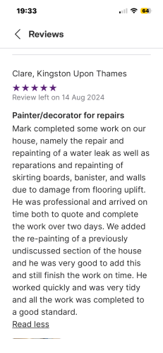 Mark was professional, prompt, extremely pleasant, tidy and did a great job. No surprises or “extras”. He did exactly what and when we asked and agreed. Would recommend.