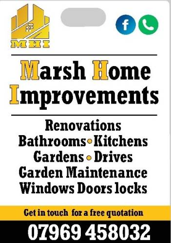 Message your photos on our social media. Marsh home Improvements-MHI Is a new company in the Merseyside area working through the whole of the north West, With 15 years plus experience. We cater to everyone's needs and we can assist with planning and design. Our work is completed to the highest standard and we are always happy to rectify any issues should there be any. Specialized in: Landscaping Driveways Renovation All aspects of work can be undertaken, simply get in touch for a hassle free quote. You can contact via Facebook too