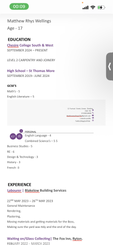 18 years old currently studying level 2 carpentry and joinery at south Cheshire college. Looking to find an apprenticeship that works in the Cheshire area. Learning to drive and should pass by around September time.