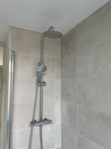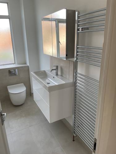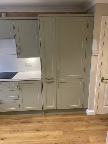 Review of Marks work, let me start by laying out the vision which I shared with him. I had a massive office, at the back of the room was a walk understairs cupboard, my idea was to cut the office down in size a bit, open up the cupboard and add a Utility room. When Mark came over he understood what I was after even with the pocket door I wanted (I had in a USA house and they are so useful), he was great and we agreed to a 2 stage job. To be honest this was so I could see the standard of his work as much as anything else. We agreed on a good price that I was happy with, he was able to start within 3 weeks, which was perfect for me, gave me time to tidy things up and find temporary storage. Mark started on time as promised and cracked into the work as we went along, he was very good, when on the first day I changed the job slightly and added a new tile floor in as well, this didn’t seem to faze him. I also informed him that I had purchased units for the room (which I got from the Netherlands), which again didn’t faze him that he had never dealt with them before and it was different to what you normally get in the UK. We discussed how we will make it work.