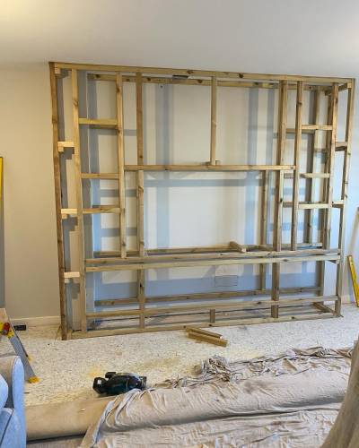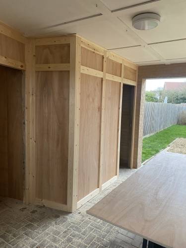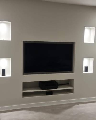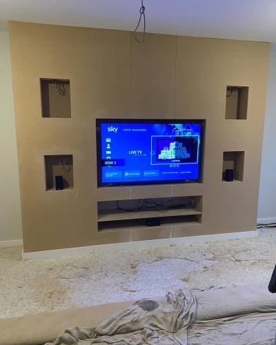 We can do refurbs, new builds, roofs, joist, doors, kitchens, wardrobes and now media walls!