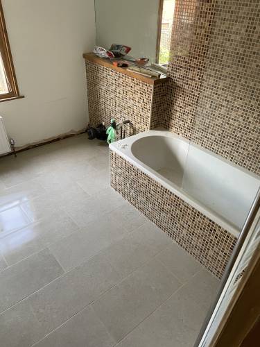Tile work is complete but there was a delay and had to follow up a few times to get it completed.