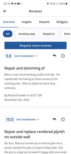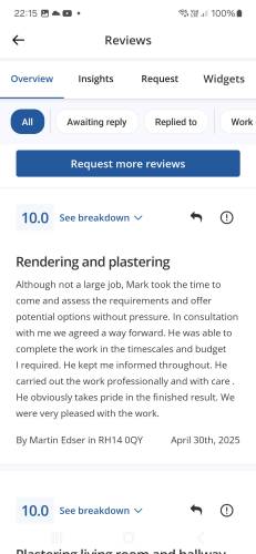 Mw plasteringAbout Our Reviews: The reviews contained on this page have been submitted by users of our service who have had a job completed by a verified trade member. We operate a closed loop feedback system which protects our users from fake reviews. To understand more about our reviews process, please visit our Reviews Policy.