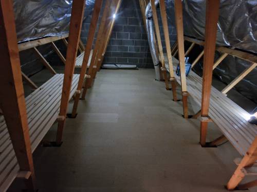 battery lighting, loft ladders, boarding for storage, insulation and shelving