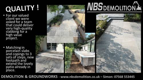Demolition, Groundworks, Asbestos removal, drainage, driveways, patios, extensions, drop kerbs, street works bell mouths. Extensions, new build.