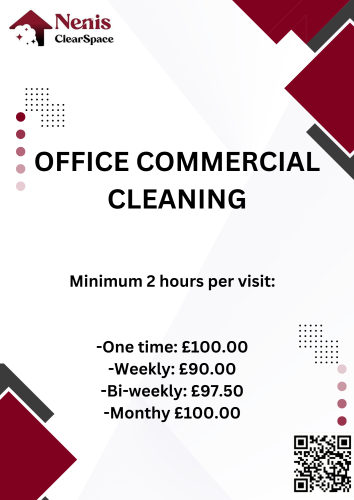 The job was completed to a brilliant standard. If I require a similar job or someone asks me to recommend a cleaner I shall pass on Nenis ClearSpace details.