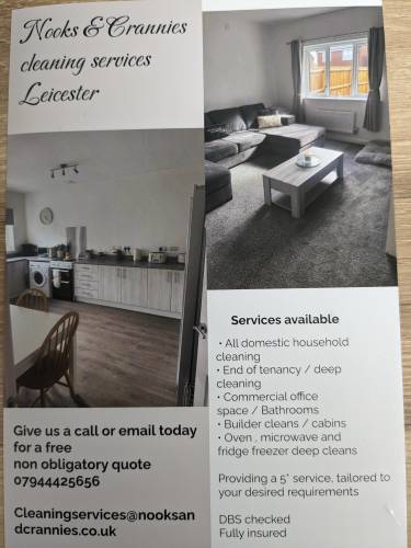 CloseInvite Nooks and Crannies cleaning services Leicester to quote for your job