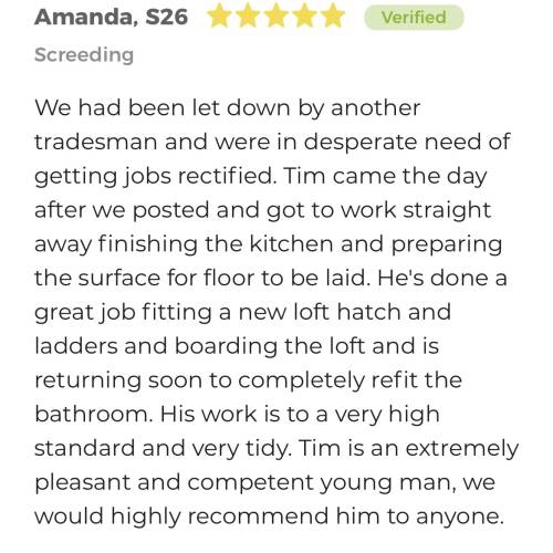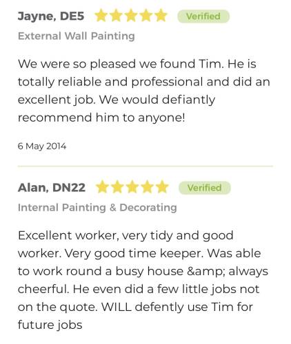 About Our Reviews: The reviews contained on this page have been submitted by users of our service who have had a job completed by a verified trade member. We operate a closed loop feedback system which protects our users from fake reviews. To understand more about our reviews process, please visit our Reviews Policy.