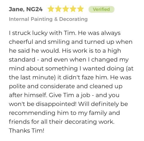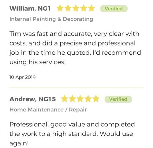 Hi I’m Tim, Welcome to Nottinghamshire Home Improvements, specialists in domestic home improvements, including bathrooms, media walls, bespoke water features and much more. Being in business for 20 years we understand the importance of providing a reliable efficient service, tailored to your requirements. We are new to my job quote, please see reviews in the photos section