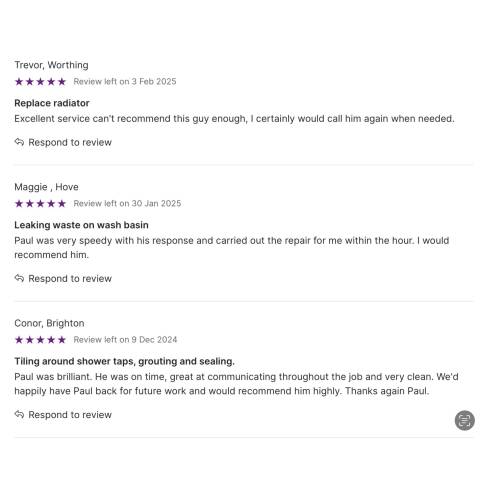 About Our Reviews: The reviews contained on this page have been submitted by users of our service who have had a job completed by a verified trade member. We operate a closed loop feedback system which protects our users from fake reviews. To understand more about our reviews process, please visit our Reviews Policy.
