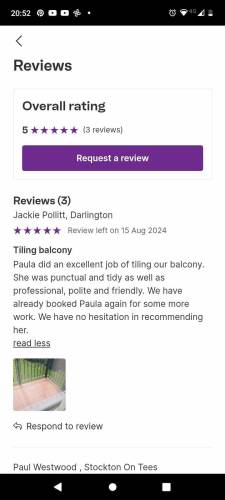 Female Painter Decorator and Tiler with over 12 years experience.