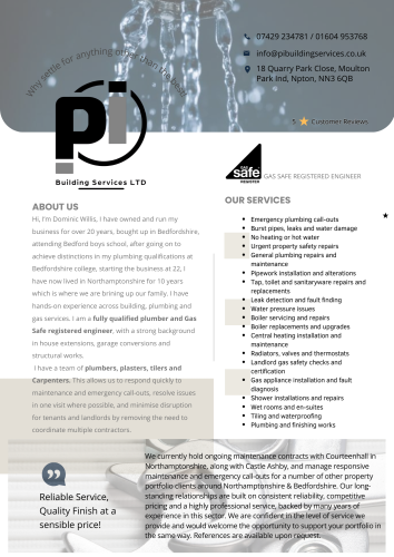 PI Building Service are a trusted, local building company serving homeowners across Northamptonshire and Bedfordshire. With over 20 years’ experience, we specialise in extensions, garage conversions, renovations and residential building work, delivering high-quality results with clear communication and honest pricing.