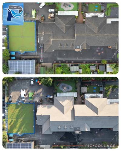 gutters cleaned well. Will contact again for new roof spray next time