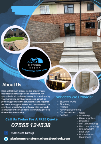 At Platinum Group, we've got you covered for all your home improvement needs! Whether you're dreaming of a cosy living space, a beautiful garden oasis, or essential repairs, we've got the skills to make it happen. ?