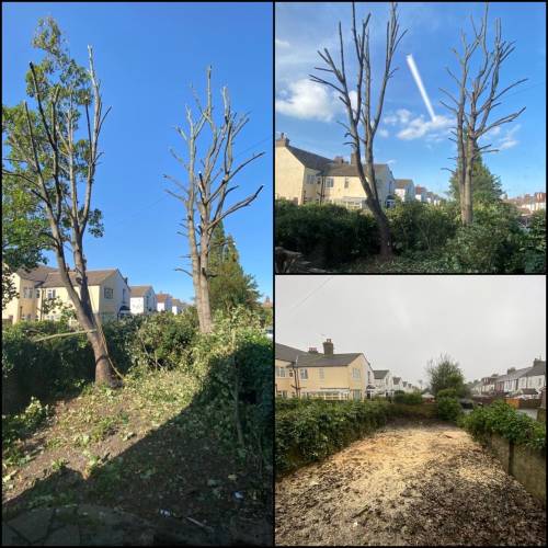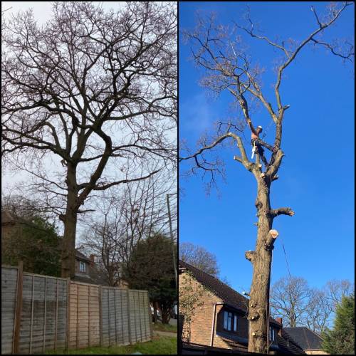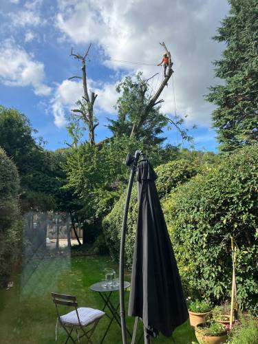 We can do everything from crown reduction to crown thinning to pruning, dead wooding, pollarding, branch removal, felling, sectional felling, hedge trimming/removal, and site clearance. For additional information, please see our tree care page.
