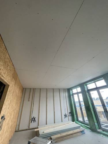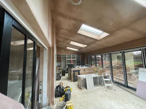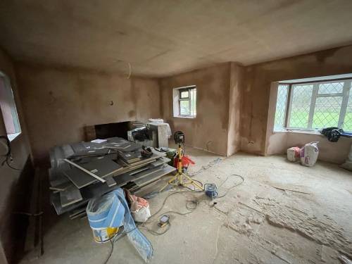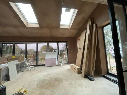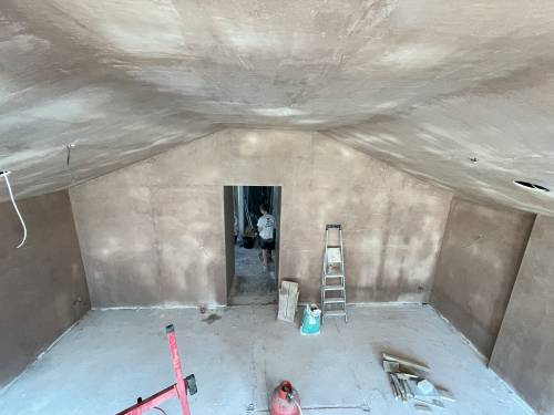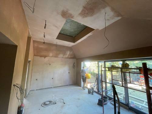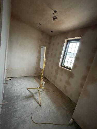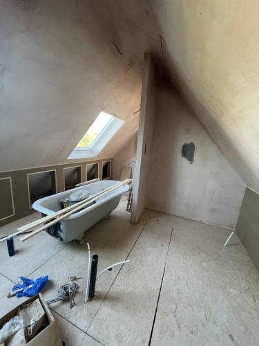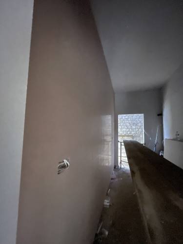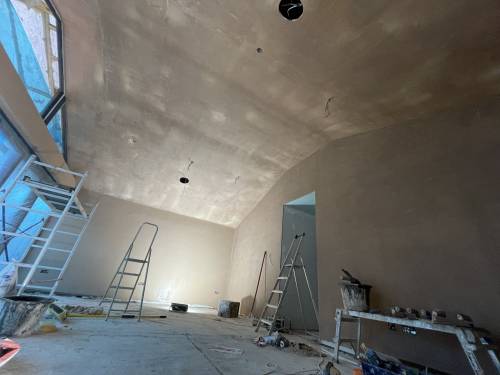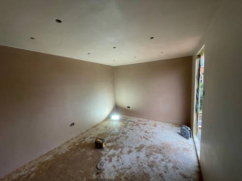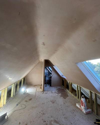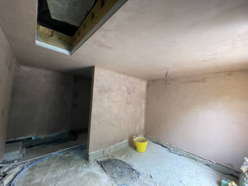 Excellent glass like plaster applied throughout- ready to apply paint with no sanding. Lots of edges, high slanted ceiling, small nooks and crannies as re model of period hunting lodge. Work included fire place boarding and plastering and left with stunning symmetrical finish. Job also included covering central protruding beams. I work as project manager in central London and have never seen such well finished plastering. The price was incredibly competitive as well. Thanks Sebastian and team. Paul and Sasha
