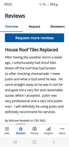 From Justins quote to instlaltion of new roof - very pleased with the work done. I can recomend this roofer.