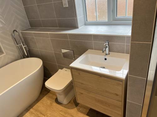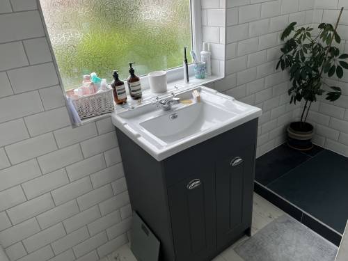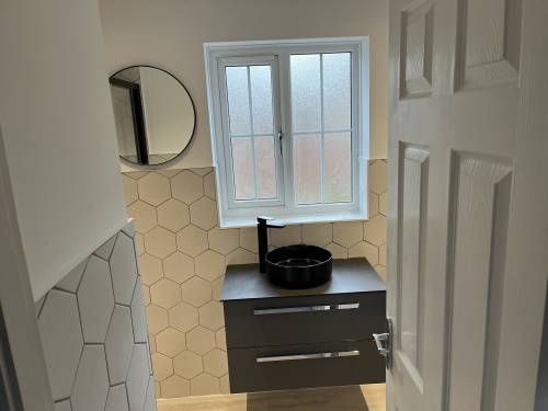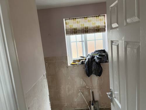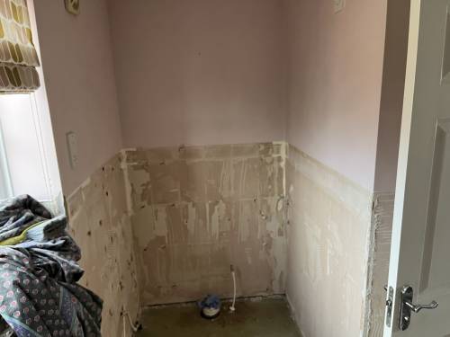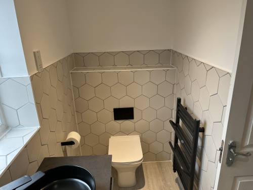 Clean and tidy worker. Walls and floor tiled. Looks great. Very pleased !