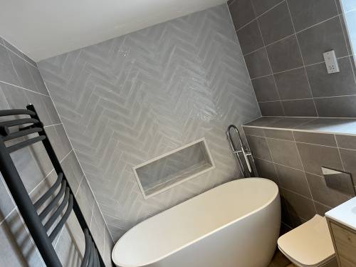 Just finished my bathroom as myself is a plumber and struggle getting a decent tiler who even answers the phone never mind turns up 😂 carried out the job perfect and will defiantly be using for my future jobs very impressed