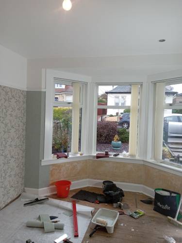 Adam did a complete make-over of our living room - ceiling, paintwork and wallpaper. He is a great tradesman and very fussy. I would recommend him to anyone. He did extra work - putting up our new curtain rail and actually fitting an extra piece of skirting board. On top of that he is a very nice man.