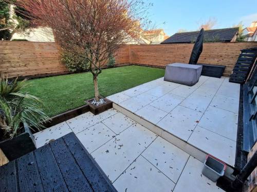 Professional gardening services mowing the lawn, cutting trees, installing fences, paving, concrete slabs, changing the lawn