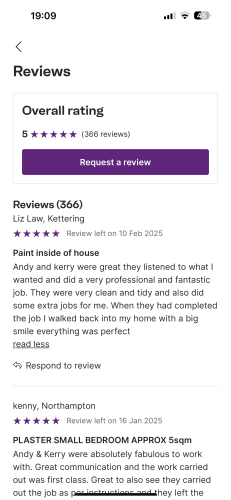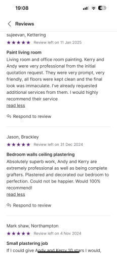 Quality plastering painting and decorating servicesAbout Our Reviews: The reviews contained on this page have been submitted by users of our service who have had a job completed by a verified trade member. We operate a closed loop feedback system which protects our users from fake reviews. To understand more about our reviews process, please visit our Reviews Policy.