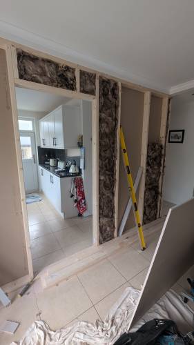 Usually, the first fix is making timber partitions, plasterboarding, and making bulkheads pipe boxes. Metal partitions MF ceilings. Finishings are all part of my job installing doors, windows, skirtings, facings, working with outside finishings, cedro cladding, rock panels, cement boards