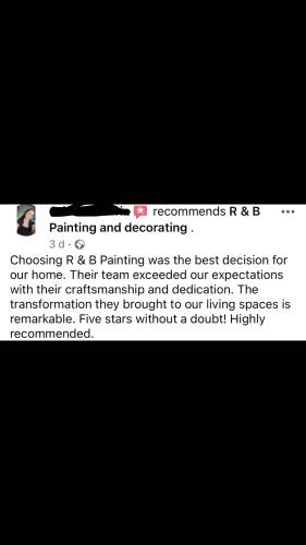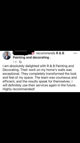 Here at rbpainting&decorating, we specialise in high end paint finishing. We specialise in projects such as: • Interior and Exterior finishing • Brush and roller finishing • Dustless sanding • Wall repairs and rapid drying skimming • spray finishing, And many more, for any further information or enquires on any of our services feel free to give us a call,