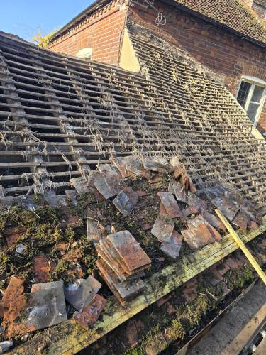 Aerial had blown down and sat on the roof precariously. They came round in the evening, when it was dark, removed that aerial and another