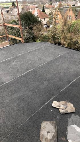 The work to renew my carport roof was done in a professional manner. I was open to suggestions to replace a damaged polycarbonate roof which has a shallow angle with the result that tiling was not possible. The recommendation was to replace the polycarbonate roof with 12 mm obs board painted on the lower side and screwed to the existing carport roof framework. This was covered as a flat roof with a 2 mm underlay over the board and a 4 mm grey mineral touch on felt. Six skylights were fitted into the roof. The house wall adjacent to the upper edge of the carport roof was ragged out and a lead flashing was fitted. The front facing of the carport roof was finished with white pvc. There was additional work in that the roofing between the carport and garage roofs was found to be defective due to leaks and this was replaced in the same manner as the carport roof. The guttering was checked for drainage when it was established that it had to be re-run. These variations to contract were carried out at a reasonable additional cost which was agreed after completion of the work. I am very satisfied and extremely happy with the work.