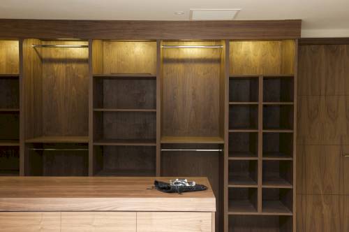 Built-ins like bookshelves, bench seating, and display cabinets