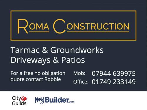 Hi Im Robbie the director of Roma construction. I will strive to give you the service you deserve, at competitive prices. I have some 12 years experience in ground works and multiple NVQs that can be seen on request. You can have total confidence in that your project will be done when stated and for the price we agree, we work to an extremely high standard and are very proud to stand by the work we produce.