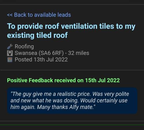 To leave a review, go to the Jobs Posted page in your MyJobQuote account, find the job you posted, and click the 'Leave a Review' button beside this tradesperson's name.