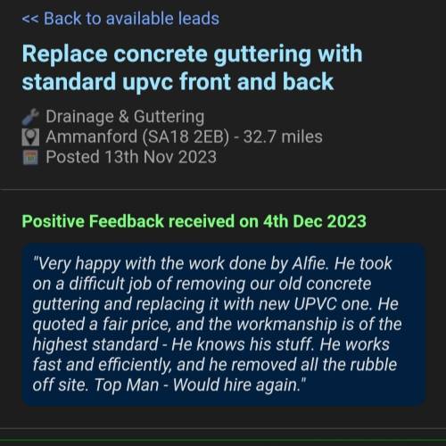 There are currently no reviews for this tradesperson. If you've had a job completed by them in the past, leave a review below.