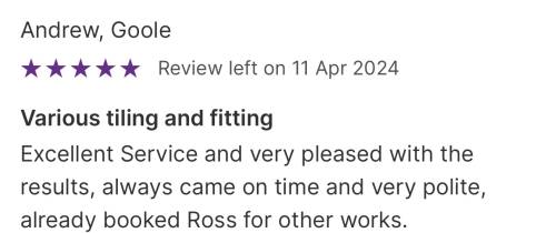 About Our Reviews: The reviews contained on this page have been submitted by users of our service who have had a job completed by a verified trade member. We operate a closed loop feedback system which protects our users from fake reviews. To understand more about our reviews process, please visit our Reviews Policy.