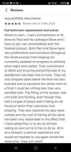 About Our Reviews: The reviews contained on this page have been submitted by users of our service who have had a job completed by a verified trade member. We operate a closed loop feedback system which protects our users from fake reviews. To understand more about our reviews process, please visit our Reviews Policy.