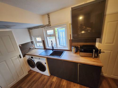 House refurbishment, install kitchen, build media wall, small garden jobs, install floor , install bathrooms, paint wall, ceiling, install doors