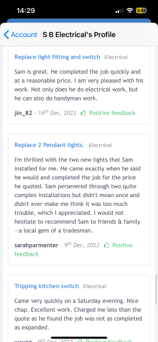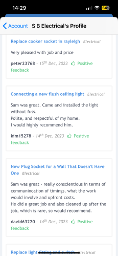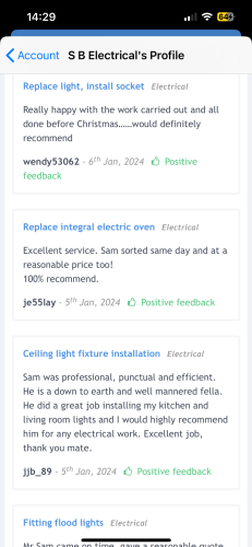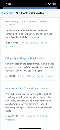 Hi my name is Sam at SB Electrical. I Cover all things electrical in both domestic and commercial settings. I am city and guilds and 18th edition qualified. Very good at what I do, no job is to small.