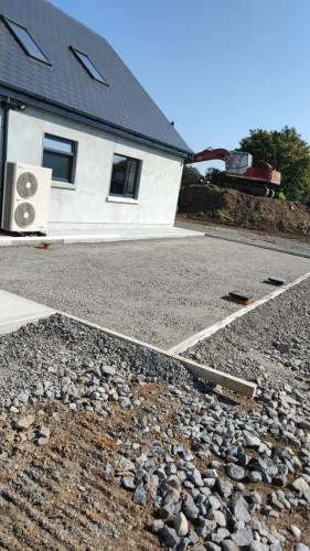 Septic tank, interceptor, drainage fields installation . Kurbs, edgings, slabs concrete works.