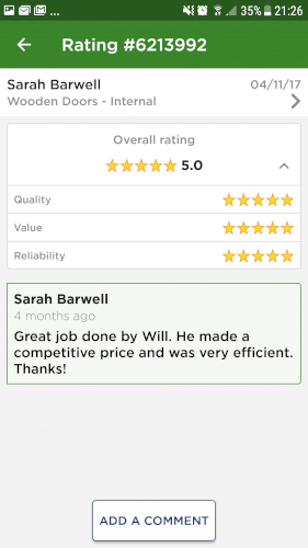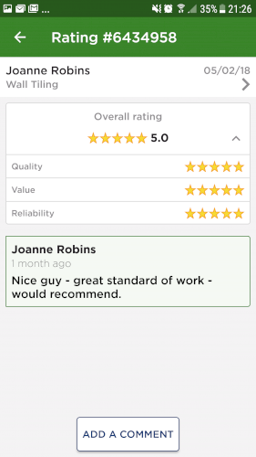 There are currently no reviews for this tradesperson. If you've had a job completed by them in the past, leave a review below.