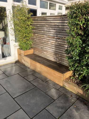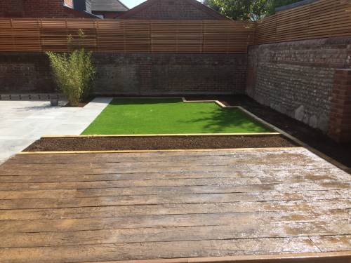 Design, build, natural stone and slabs, raised beds in brick or sleepers, lawns, artificial turf, wooden and composite decking, all types of fencing, bespoke seating, general gardening tidies, mowing, lawn care and maintenance.