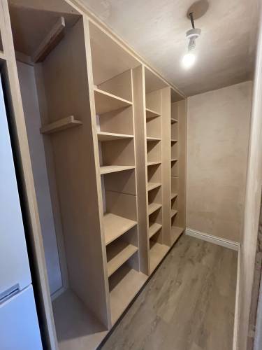 We are a two man team with over 40 years experience in the trade. We specialise in all carpentry aspects ranging from modular to bespoke. Internal fit outs, from complete house redesigns to kitchen rip outs and replacement, internal walls and garage conversions/ loft conversions, wall panelling/ decking/ doors / flooring / built in wardrobes and cupboards and custom pantry installation.