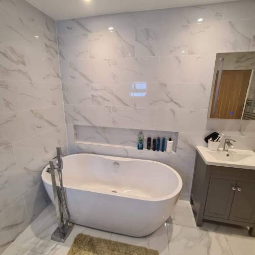 At Silva Build, we offer a wide range of bathroom services; from new vanity units and countertops, to format tile work and full bathroom refits. Our team of experts thrive on bringing your exact vision to life using our knowledge, expertise, and 3D designs - we create a space you've always dreamt of.