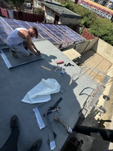 Fixed a hole in the roof as an emergency on the same day