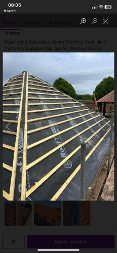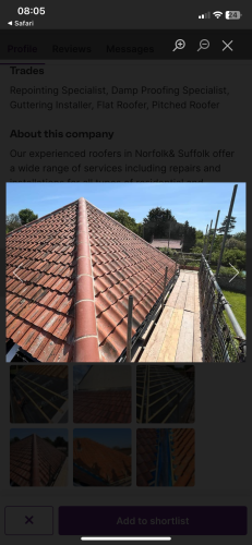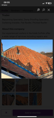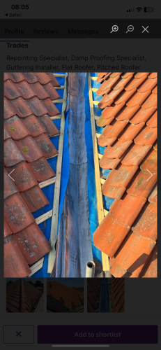 Craig was excellent no B/S fair price the work was completed in very good time and to a high quality my roof doesn't leak any more and the chimney repointing looks good as new very pleased and highly recommended