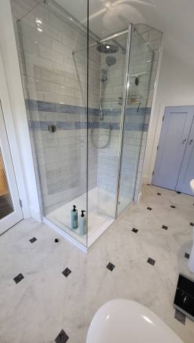 Undertake bathroom refurbs, house renovations requiring tiled floors and UFH. Shop refits, swimming pools, wetrooms and all external patio tiling. Specialising in Natural Stone, Porcelain, mosaics and ceramics.