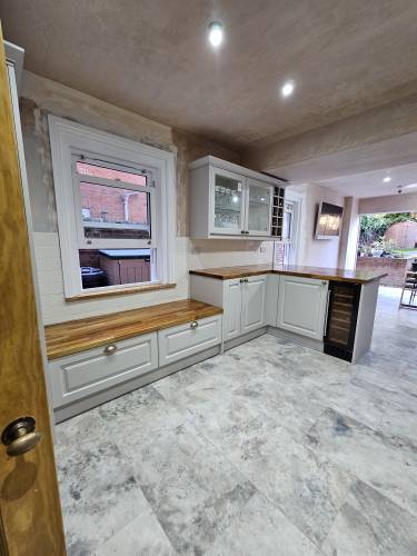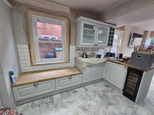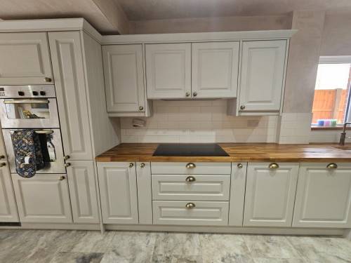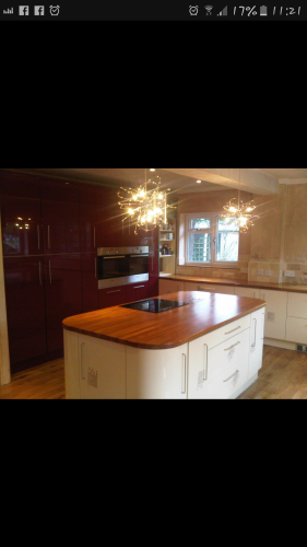 I thought it was very expensive. I was quoted £350 for a 5/6 hr job but it took 2hrs. When he measured up he only measured where the bottom of the cupboard would go not the top and it wouldn't fit. He then had to move the cooker hood about 1cm left and then charged me an extra £30 for his mistake. Total bill £380 for 2 hrs to fit an already off the shelf cupboard. He was also quite messy and although he hoovered the kitchen he left a trail through the living room and cooker hob. I now have to get rid if the remains of the bits cupboard that were cut out and left by my garage.