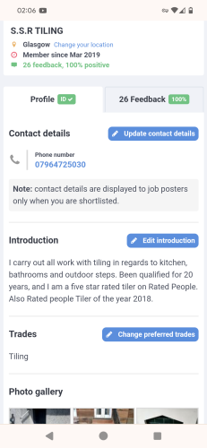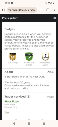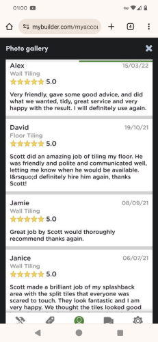 Im five star rated on rated people and a 100 percent record on mybuilder. Also rated tiler of the year 2018...(see profile pics)