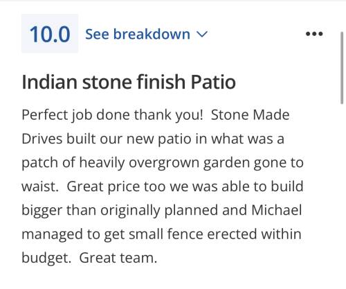 Michael and his team did a fantastic job for me. Can’t fault anything from quote to completion. The Indian stone looks gorgeous in all weather just as he said so 5 stars for Stone Made Drives Ltd. Paul
