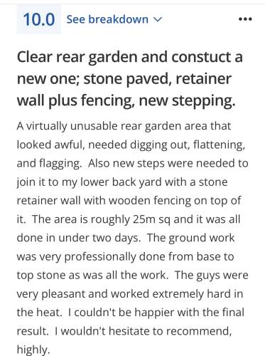 All reviews are submitted by homeowners who have had work completed as part of using our service. Whilst every effort is made to verify and check reviews, we ask all homeowners to conduct their own research and follow our Homeowner Checklist before hiring.